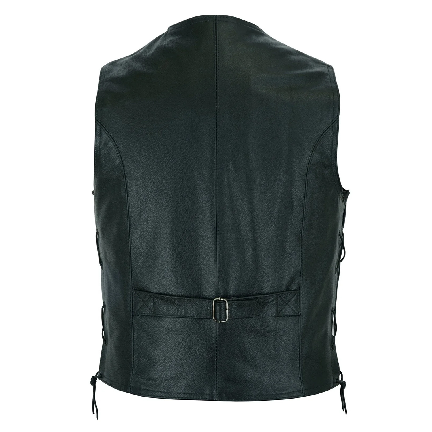 This black leather vest offers a clean, modern design with a strong masculine appeal. Crafted from premium genuine leather, it features a smooth finish that delivers both sophistication and toughness. The sleek silhouette makes it a versatile piece that transitions easily from casual settings to motorcycle wear.